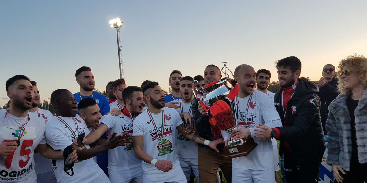 Il Tonara porta a casa la Coppa Italia Eccellenza della Sardegna battendo l'Atletico Uri (1-0) e ricevendo il trofeo dal Presidente del Comitato Regionale LND Giovanni Cadoni. Sul campo del centro di formazione federale Sa Rodia, di fronte a una grandiosa cornice di pubblico, che ha visto la presenza di mille tifosi tra gli spalti, i ragazzi guidati da mister Antonio Prastaro sbloccano la partita sullo scadere del primo tempo. Arriva infatti al 43' il gol messo a segno da Leo De Soldado sugli sviluppi di un calcio di punizione battuto dal capitano Antonio Pili. E proprio la rete del brasiliano, classe '89, consegna la vittoria e la Coppa ai nuoresi. Nulla da fare per l'Atletico Uri che per il secondo anno consecutivo perde in finale, nonostante la supremazia e le occasioni create nel corso della gara odierna arbitraria all'algherese Davide Galiffi.