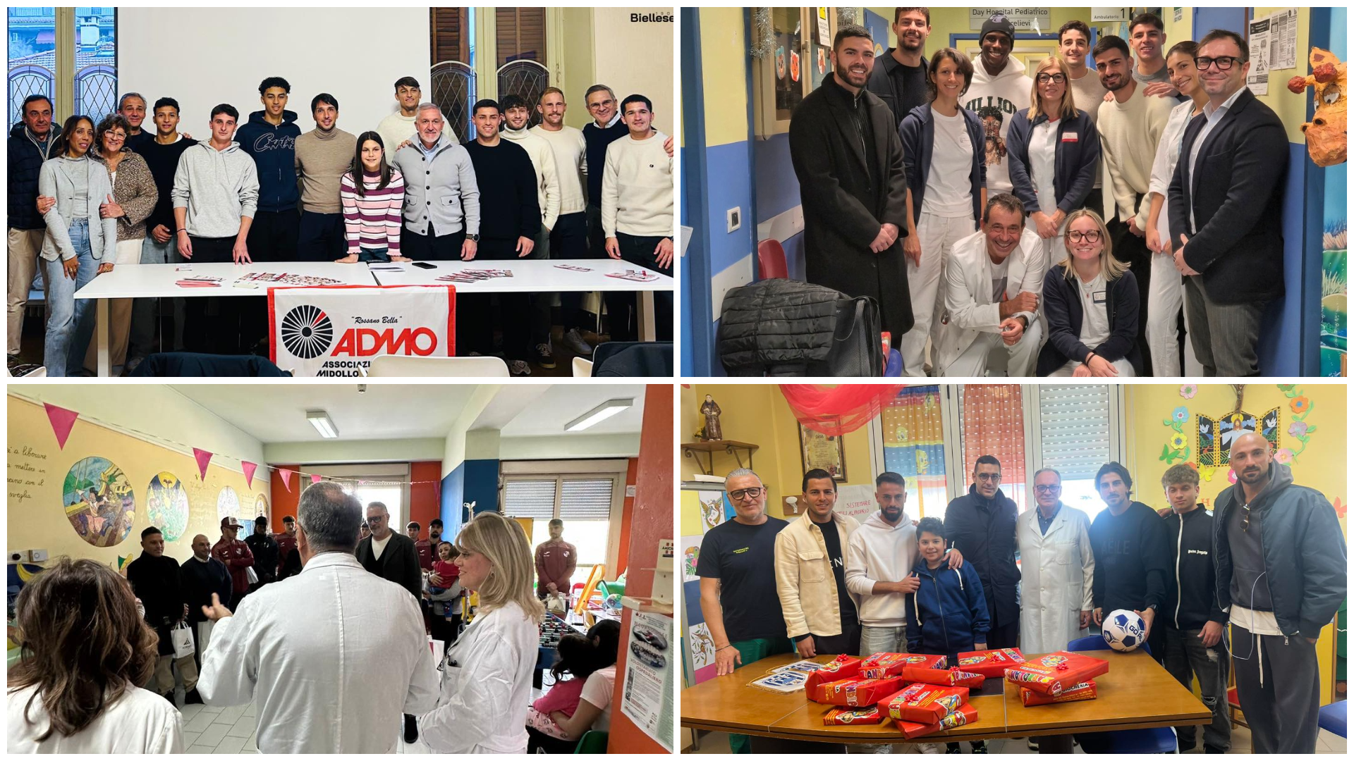 I piccoli grandi eroi del reparto di pediatria dell’ospedale di Correggio hanno ricevuto dei graditi omaggi da parte dei giocatori della Correggese. Palloni, maglie ufficiali, giocattoli e tanti abbracci per i bambini ricoverati nell’ospedale di Conegliano da parte di tutto il club. I giocatori del San Luigi hanno donato il sangue all’Ospedale “Maggiore” di Trieste. L’Oltrepò e il Vado hanno vissuto una giornata indimenticabile nel reparto oncologico pediatrico del “San Matteo” di Pavia e in quello del San Paolo” di Savona. Il Sestri Levante ha regalato la maglia e un momento di gioia a un ragazzo tetraplegico ricoverato al Centro Santa Maria dei Poveri - Polo Riabilitativo del Levante Ligure grazie alla collaborazione con l’associazione “Uniti per Paolo”. La Biellese ha dato il via ad una collaborazione fattiva con l’Associazione Donatori Midollo Osseo.