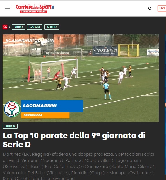 La Top 10 parate della 9^ Giornata della Serie D